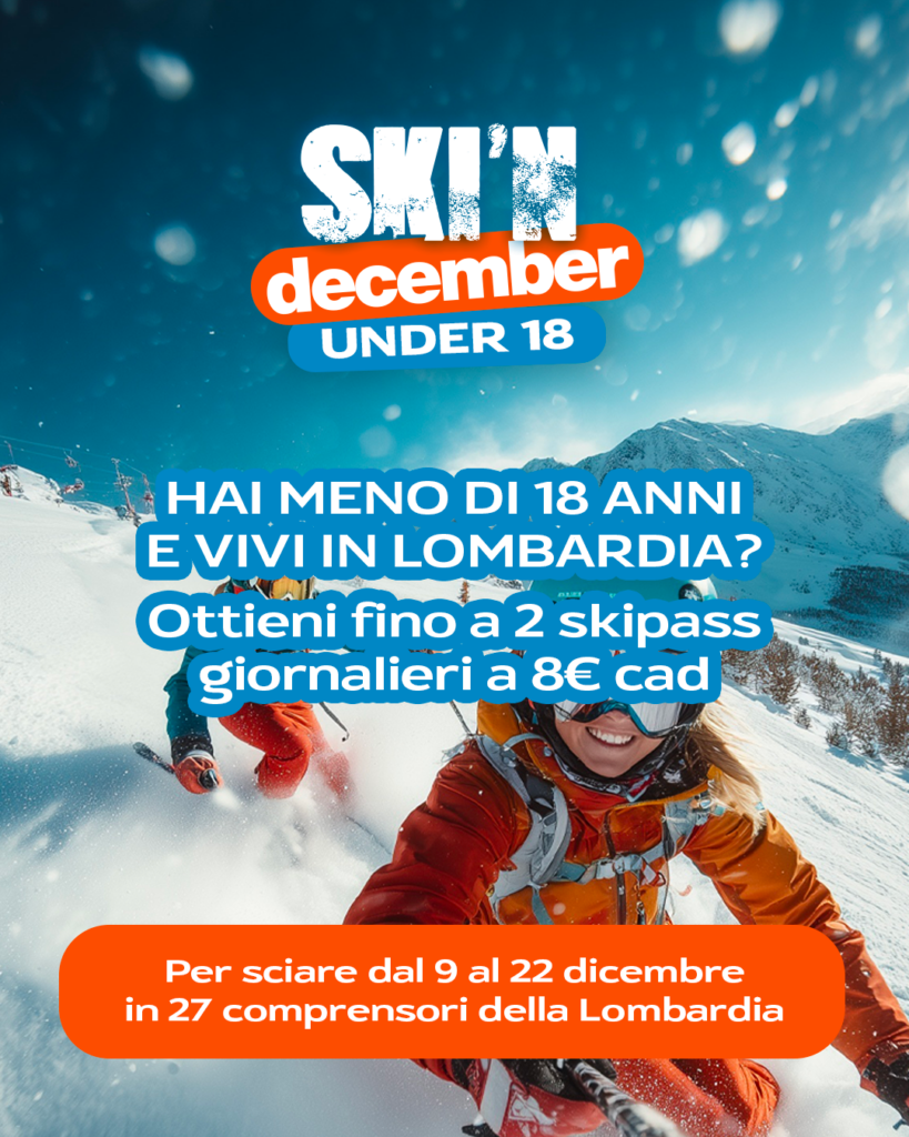 SKI’N DECEMBER Under 18Hai meno di 18 anni e sei residente in Lombardia? Scopri come accedere alla promozione